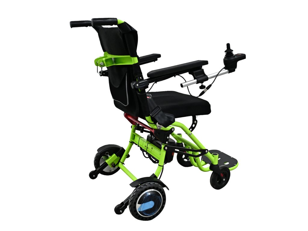 Scaun cu rotile electric 07B Li-ion cu tehnologie de urcare pe scări, motoare puternice și design compact pentru mișcare confortabilă și călătorie ușoară.